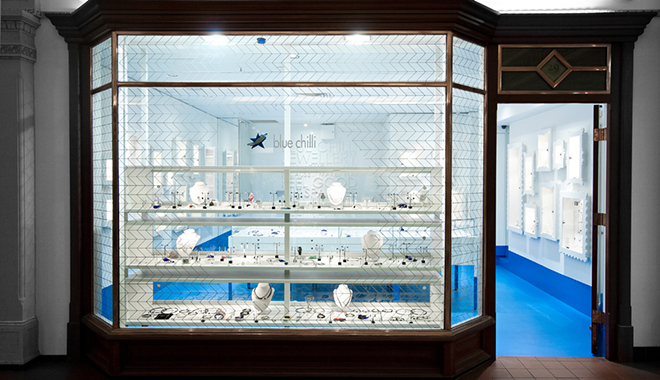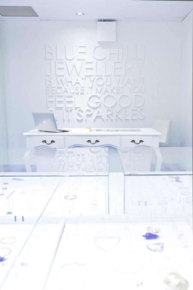 The brief was to refit the existing stirling silver store and to launch the new look Blue Chilli Jewellery into the market with fresh energy, bespoke jewellery & white gold.
