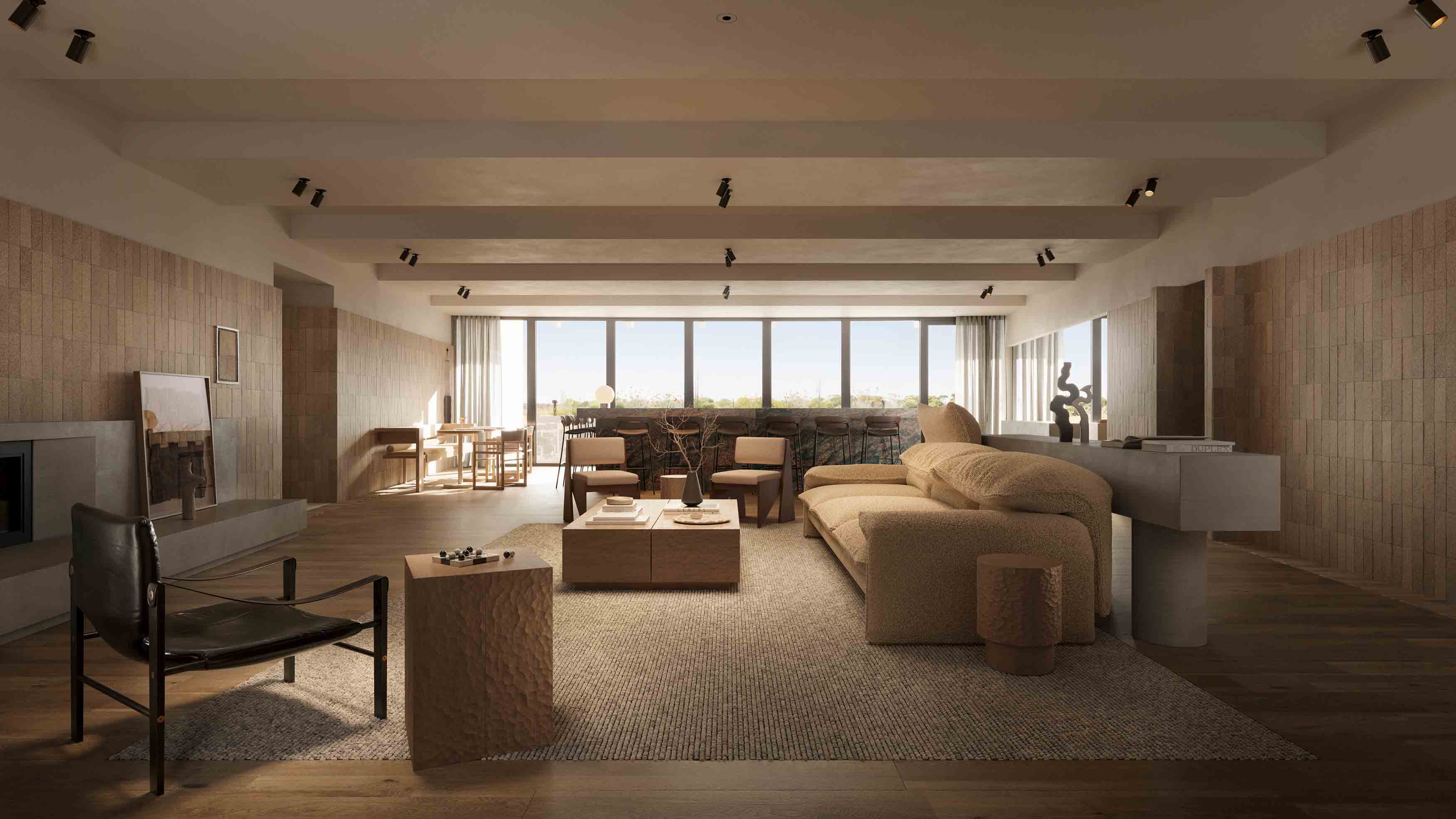 The Monarto Safari Lodge was designed as a calm, textural, and understated luxury space using natural, locally sourced materials and custom joinery. A textural minimal aesthetic creates warmth and timelessness while connecting guests to the landscape without cliché. The space embraces grounded luxury, dusty surroundings and curious roaming wildlife. Thoughtful furniture planning frames views, enhances light and texture, and integrates sustainability through local sourcing and reduced environmental impact.